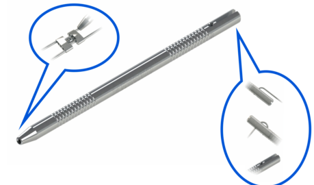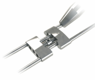 Is a handy device to facilitate folds in thick wires (distalizing Hirax type, etc..). It has openings and wire engaging slots for allowing the use of wires of 1.5 mm in thickness.